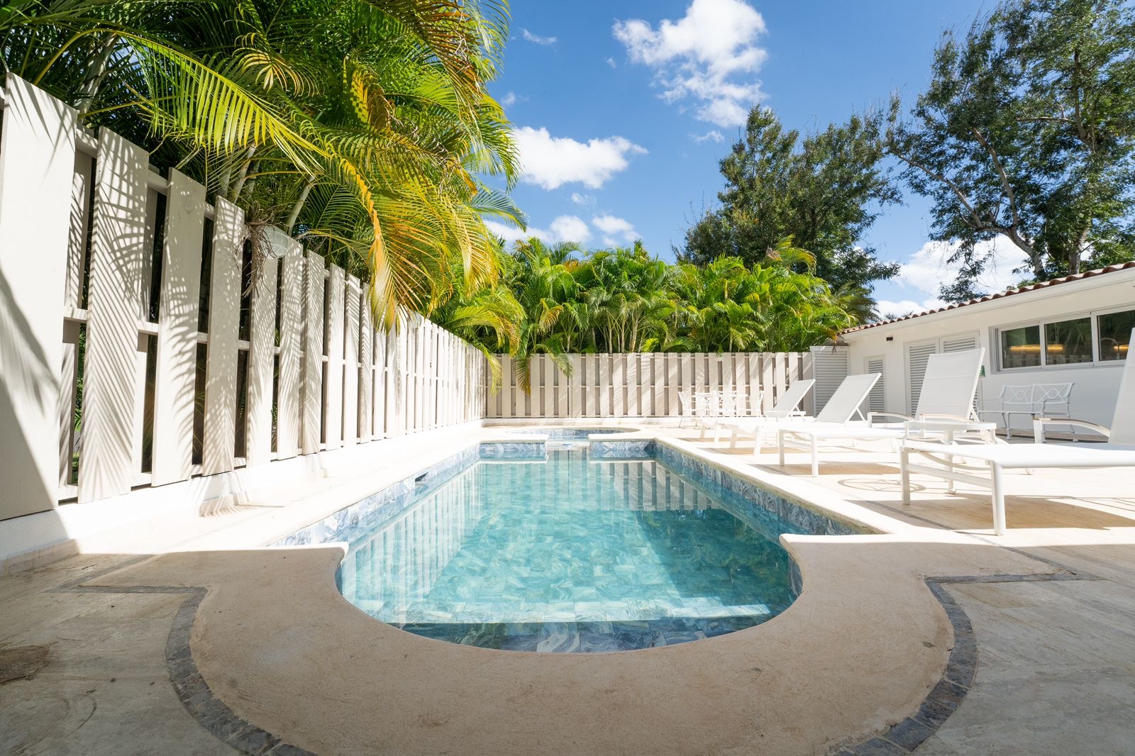 Each of the four bedrooms is tastefully decorated and equipped with air conditioning, ensuite bathrooms, and plenty of natural light. The master suite offers direct access to the pool and garden area, creating a serene setting to unwind.