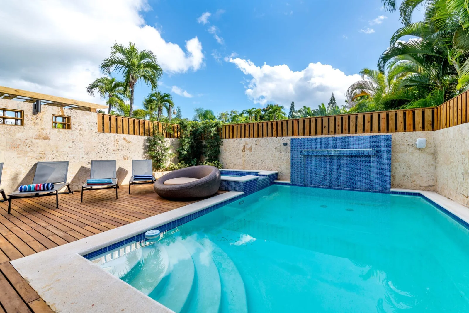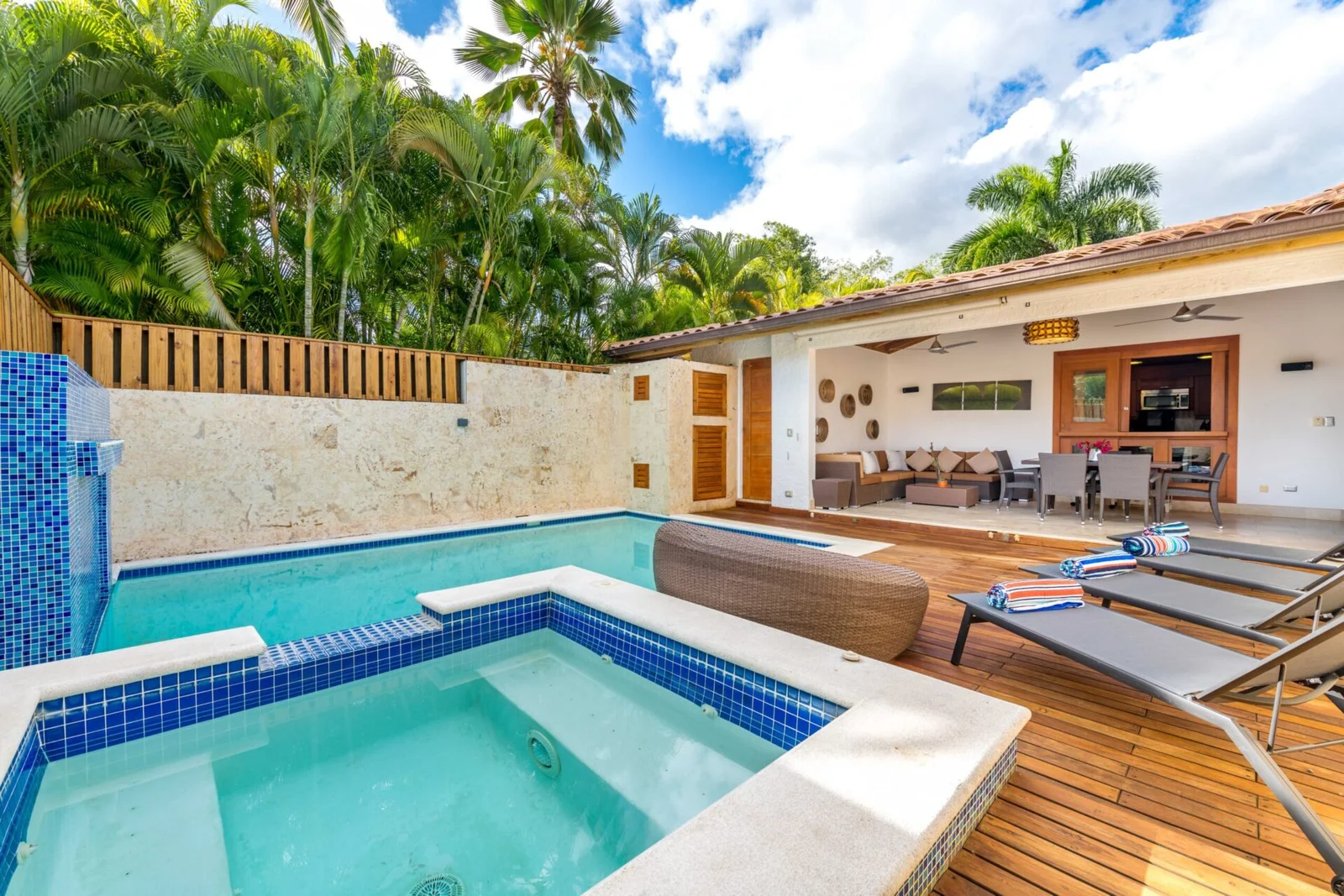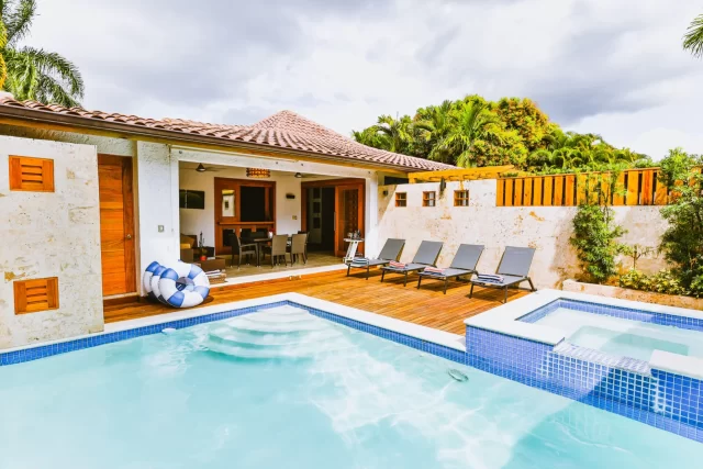 Unwind and recharge with family or friends at this serene villa within the Casa de Campo resort. With a private pool, jacuzzi, and BBQ area, this villa is perfect for relaxed gatherings at home. Its prime location offers easy access to the Casa de Campo Hotel, polo fields, and skeet shooting center, and Playa Minitas beach is just a short golf cart ride away! Casa de Campo also features six stunning golf courses, tennis courts, and an equestrian center for guests to enjoy.
