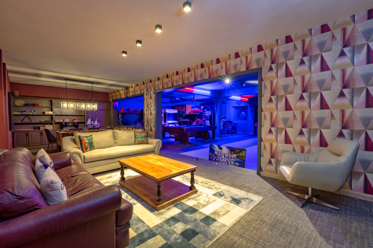 Inside the Property:Relax in one of 4 elegant bedrooms, each featuring a King-size bed for ultimate comfort. For larger groups, enjoy a room with 4 cozy bunk beds and another that includes a Full-size bed and 2 additional bunk beds—perfect for kids or friends traveling together. A spacious kitchen and dining rooms make it easy to prepare and enjoy meals together, while the large common room is perfect for relaxing and connecting.