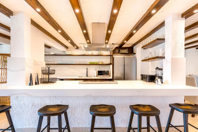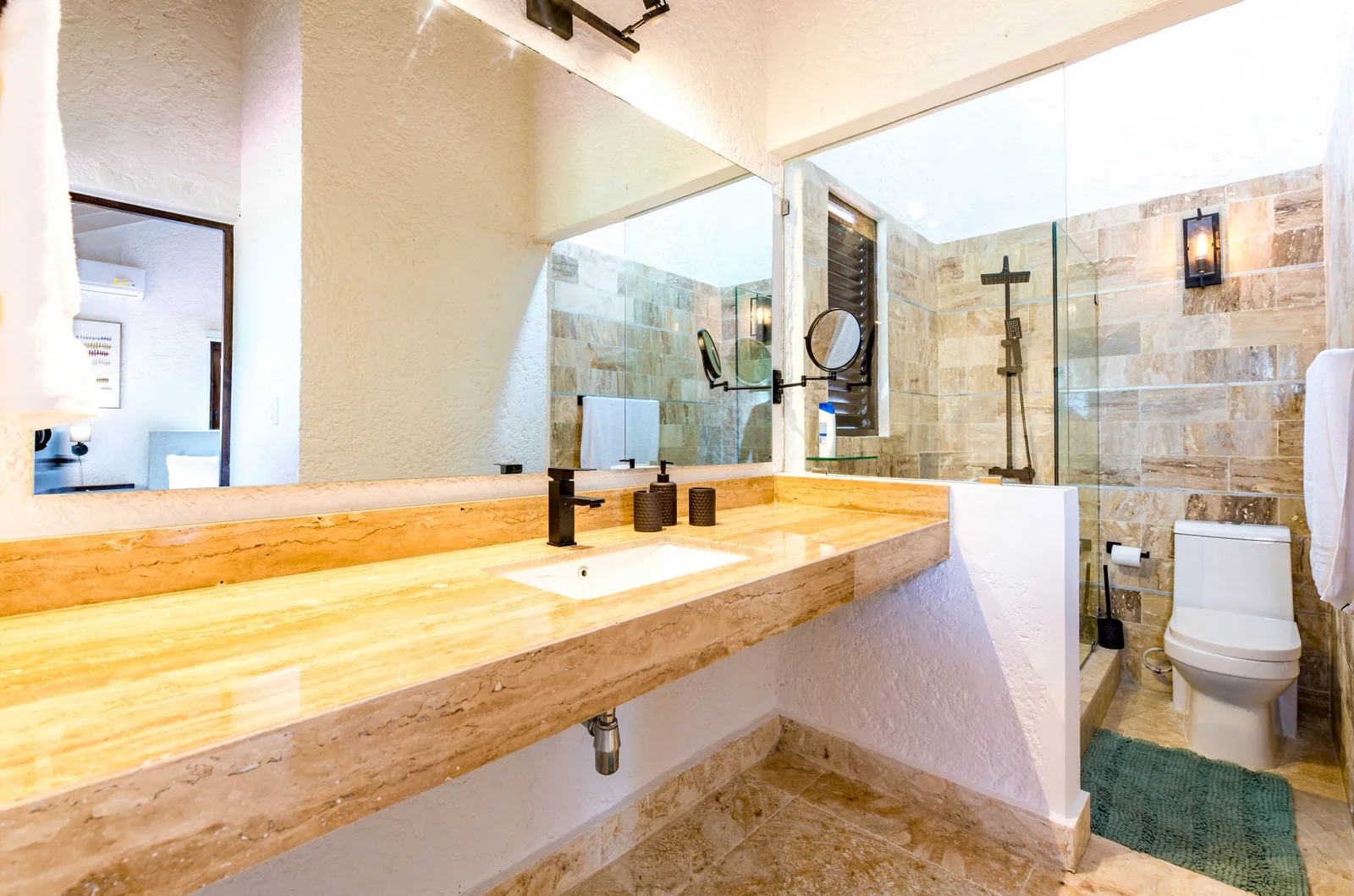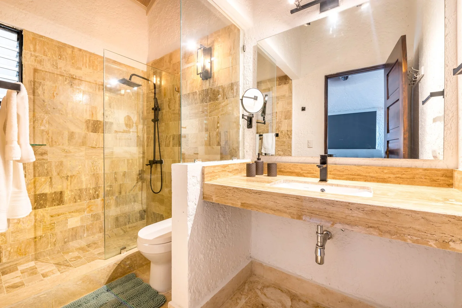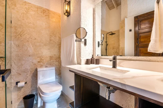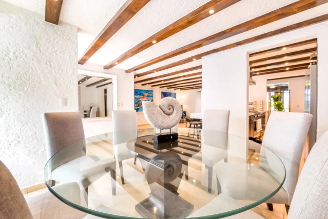 Located just a 1.5-mile golf cart ride (or walk) from Playa Minitas beach, this townhouse is also a short 5-10 minute golf cart ride to the Mediterranean-style village of Altos de Chavón, the marina, and the resort hotel. Altos de Chavón offers numerous restaurants, bars, shops, a mini market, amphitheater, art school, beautiful gardens, water fountains, and a public pool with views of the Chavón River and Dye Fore golf courses. Guests with reservations can enjoy a discount at Onno’s, Casa de Campo’s top-rated restaurant. For fine dining, La Piazzetta is an excellent choice, offering a refined dining experience.