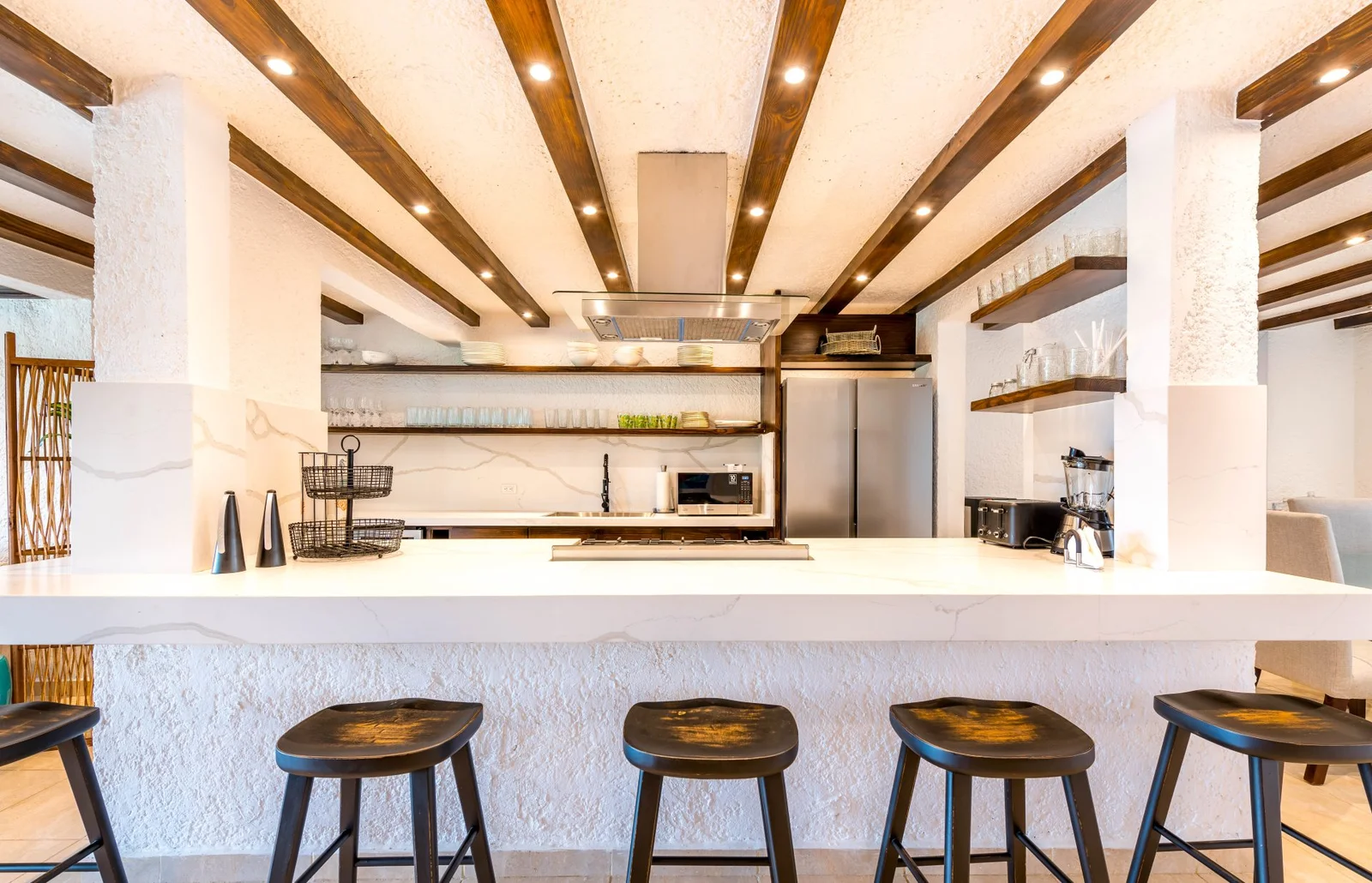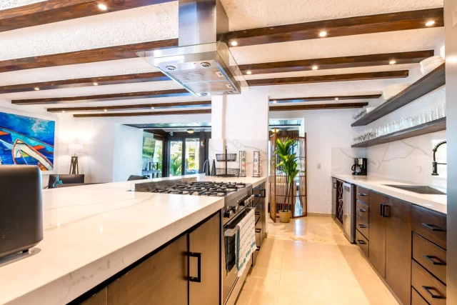 The home includes a full-time housekeeper and talented cook, working daily from 9 a.m. to 4 p.m. She is also available to prepare and serve dinner with advance notice, with a small fee for her return transportation. Her services are included in your stay, and we can stock the villa prior to your arrival based on your provided grocery list (including any dietary needs). She can prepare breakfast, lunch, or dinner upon request, with local menu options available. The front courtyard features a new BBQ grill and additional seating.