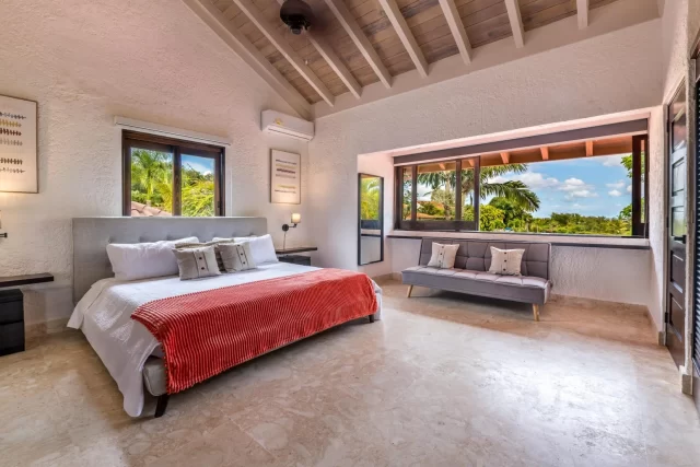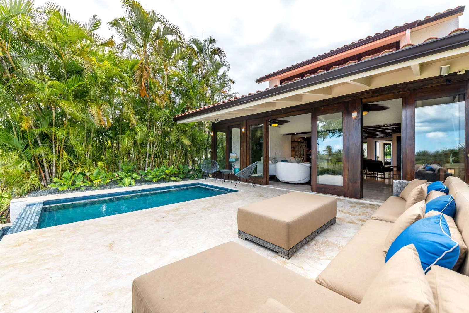 This beautifully remodeled townhouse offers three spacious bedrooms and five bathrooms, ideally situated in Tennis Villas, just steps from the tennis courts and centrally located within the stunning Casa de Campo resort. Enjoy a large porch with ample seating by a brand-new heated infinity pool, a fully updated kitchen, and maid’s quarters for daily laundry and ironing needs. The living space is equipped with a smart TV, Sonos surround sound throughout, a full bar, wine cooler, and additional dining and lounge areas.